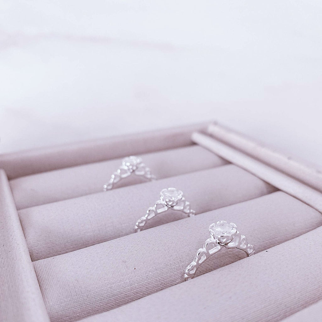 Anel de Prata Solitário Detalhes Corações